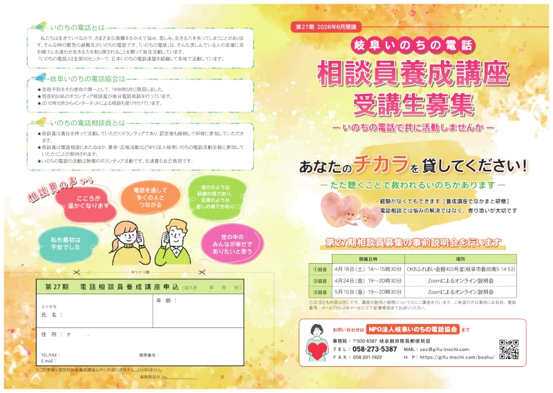 あなたもこのボランティア活動に加わって、ともに学びつつ、受話器をとる一人になりませんか。